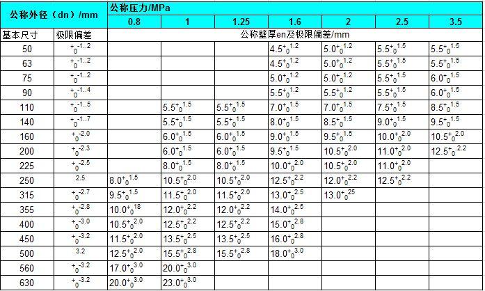2、公稱壓力為管材在20oC下輸送水時的最大承壓,若介質溫度不同時,應參照上表修正;